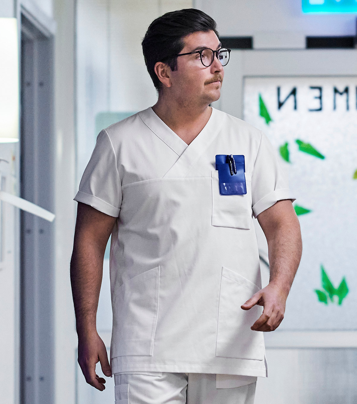 Blus med V-hals i unisexmodell. Bröstficka på vänster sida och två framfickor för förvaring av tillbehör. Plagget är anpassat för höga tvättemperaturer. Matcha blusen med ett par vita byxor. Längd mitt bak 74 cm i stl M.