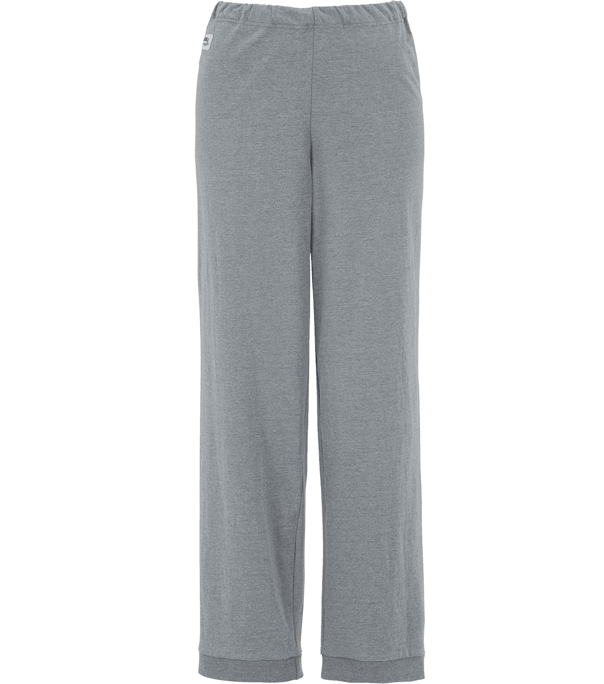 Joggingbyxa till patient i unisexmodell. Byxan har behagligt material med ribb i besluten. Reglerbar midja med knapphålsresår. Plagget är anpassat för höga tvättemperaturer. Innerbenslängd exkl. mudd 72 cm i storlek 60-80kg.